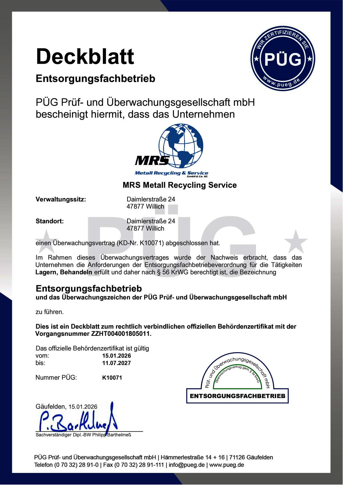 MRS verfügt über alle erforderlichen Zertifikate und garantiert damit, durch eine Ausrichtung nach deren Standards, Zuverlässigkeit und Qualität in allen Bereichen.